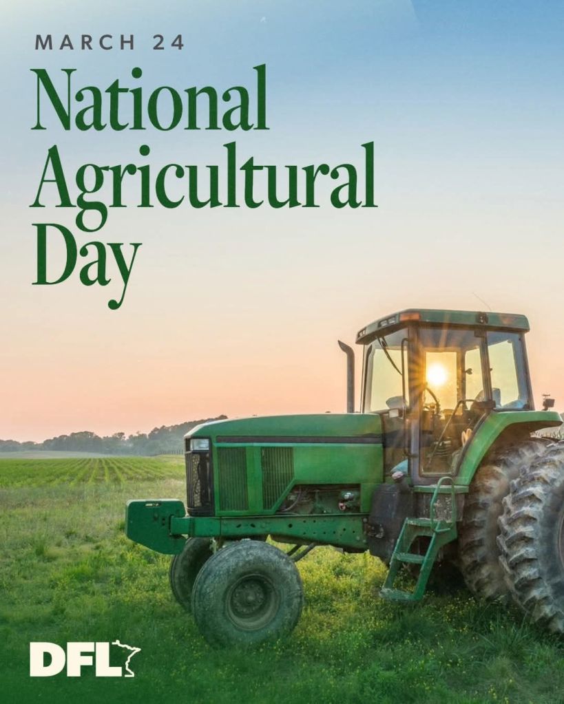 Happy National Agriculture Day! Having grown up on a dairy farm I understand the effort and dedication required to be successful. And though I don’t actively farm today, I also don’t take for granted the hard-working farmers who grew and/or raised today’s meal. One of my goals is to put the “F” and the “L” back in “DFL” and help local farmers and laborers in the agriculture industry who have been left behind.